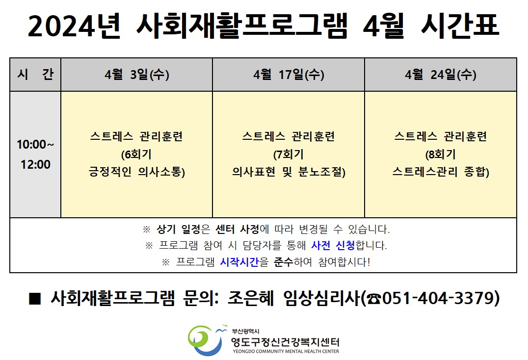 | 2024³â 4¿ù »çȸÀçȰÇÁ·Î±×·¥ ¾È³» | |